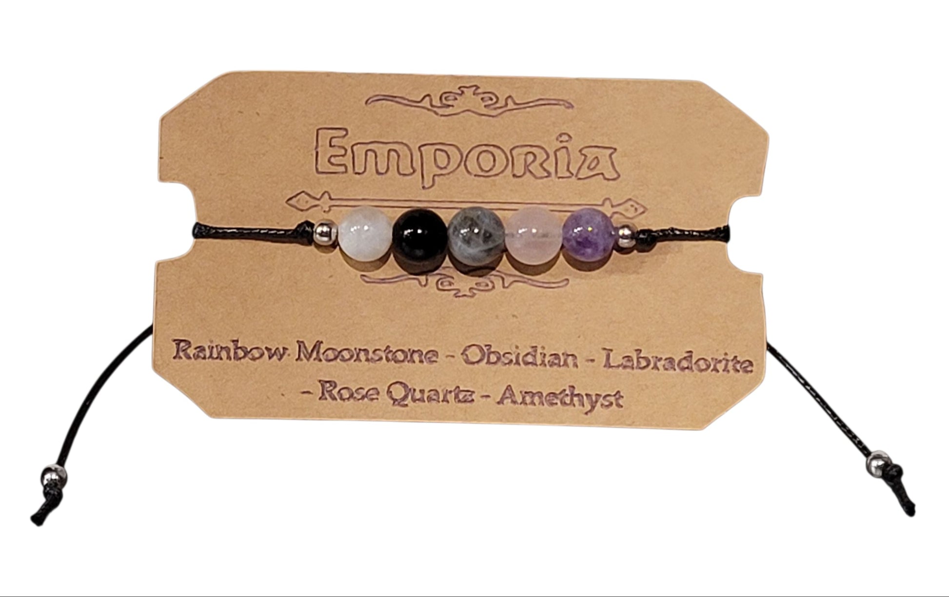 Sliding Knot Bracelet with Rainbow Moonstone - Obsidian - Labradorite - Rose Quartz - Amethyst.