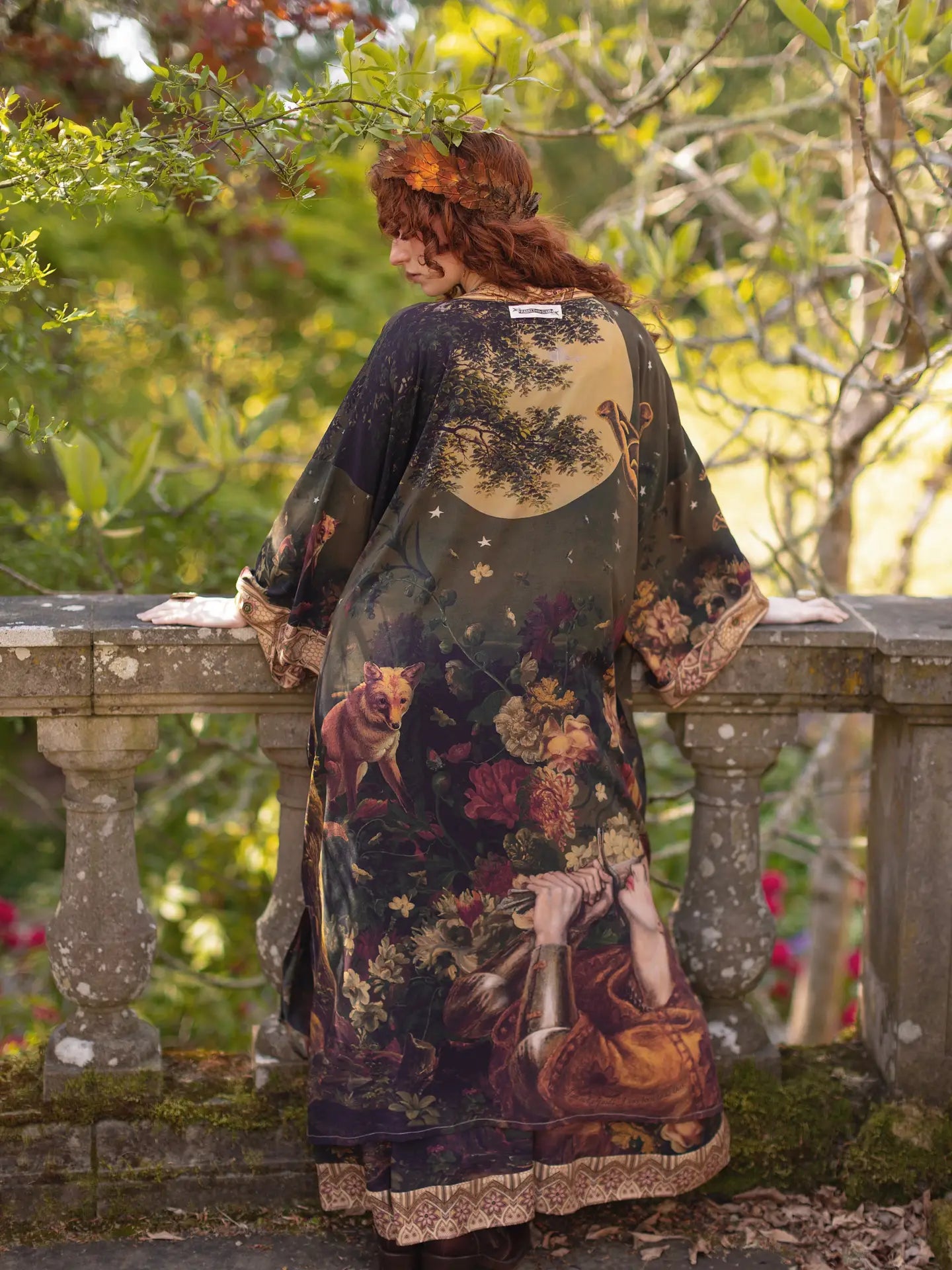 The florals in our print, taken from centuries-old paintings, represent the enduring beauty of faith and perseverance, while the trim — featuring a hand-coloured drawing of stained-glass church windows — pays homage to the sacred spaces where Joan found solace. The wise fox, painted in 1810, evokes the divine guidance she credited for her remarkable feats.
